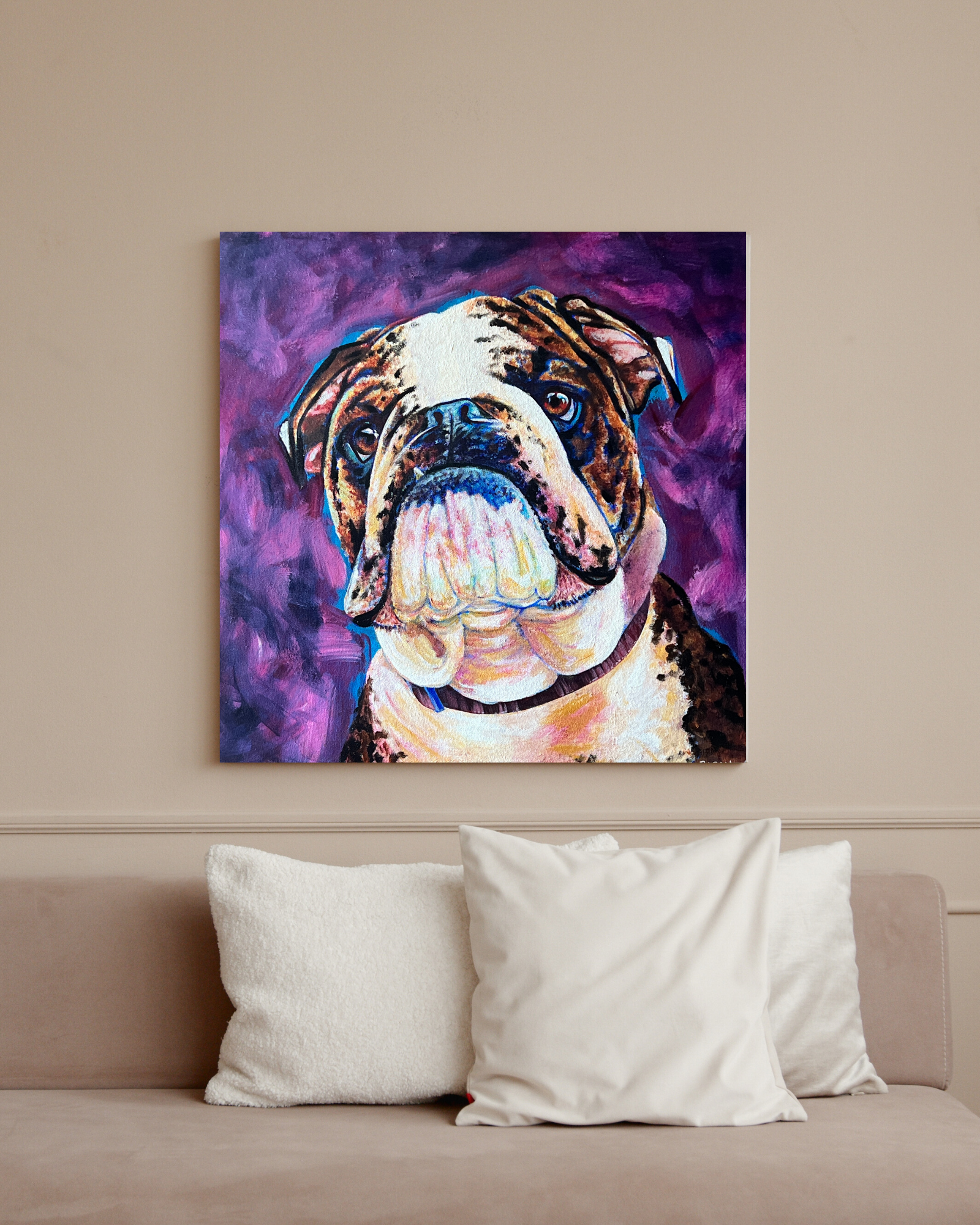 Bulldog Acrylic on Canvas Giclee 20" x 20"