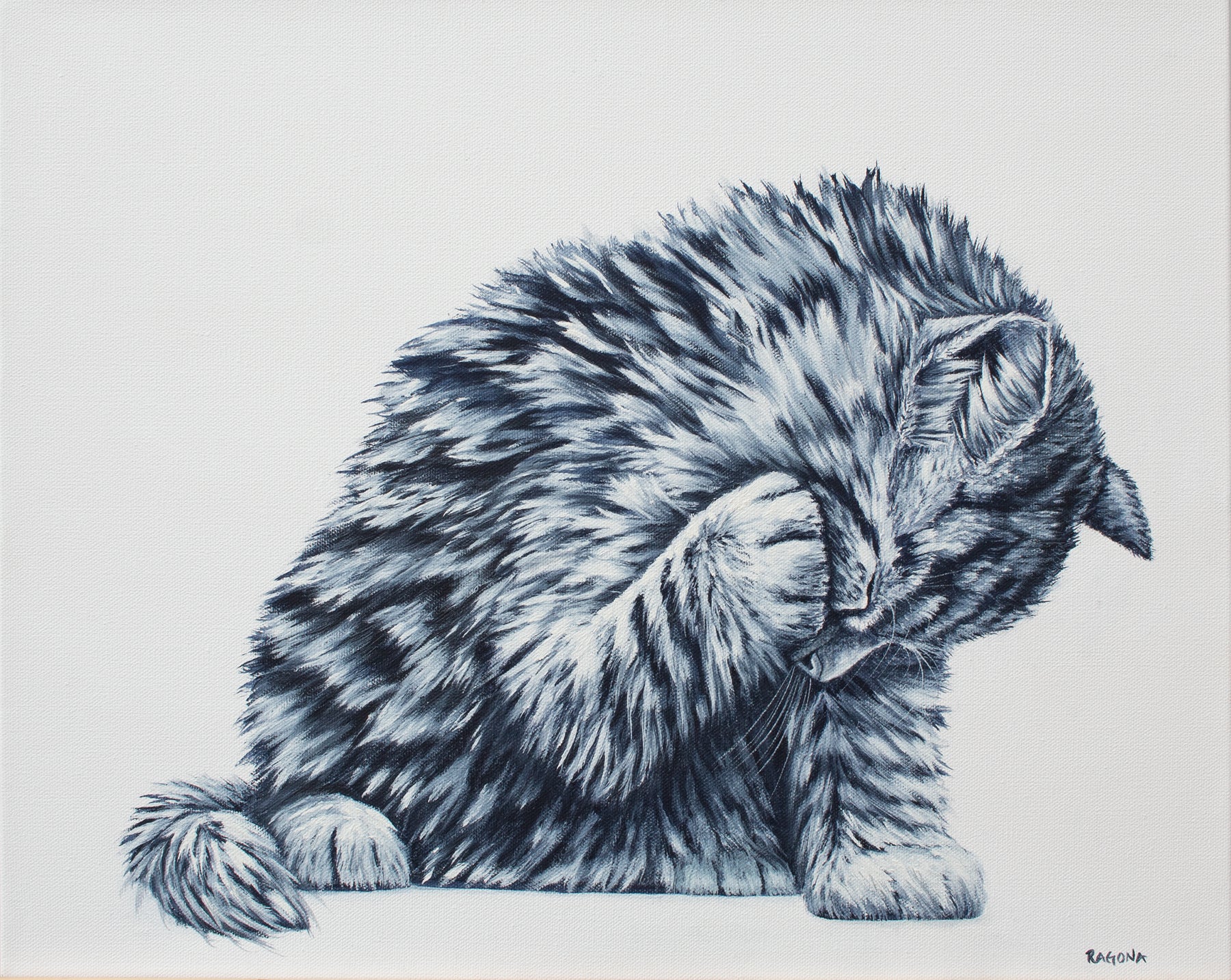 Bath Time 1 Kitten Acrylic on Canvas Giclee 16" x 20"