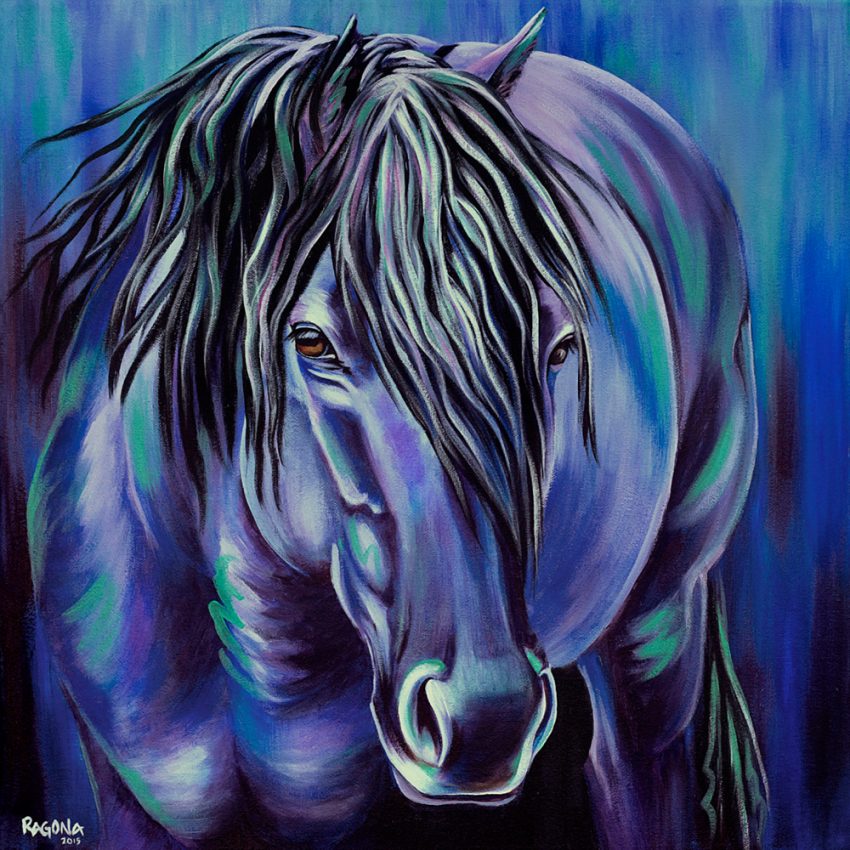 Blue Mustang Oil on Canvas Giclee 20″ x 20″