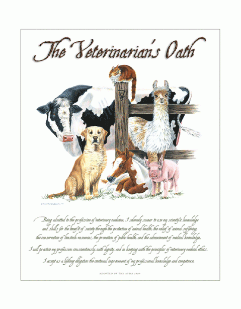 - Although the AVMA holds the rights to the NEW “Veterinarian’s Oath”, Vet Med Art.com has been given permission to share it with you in this manner, prints 24″ x 30″