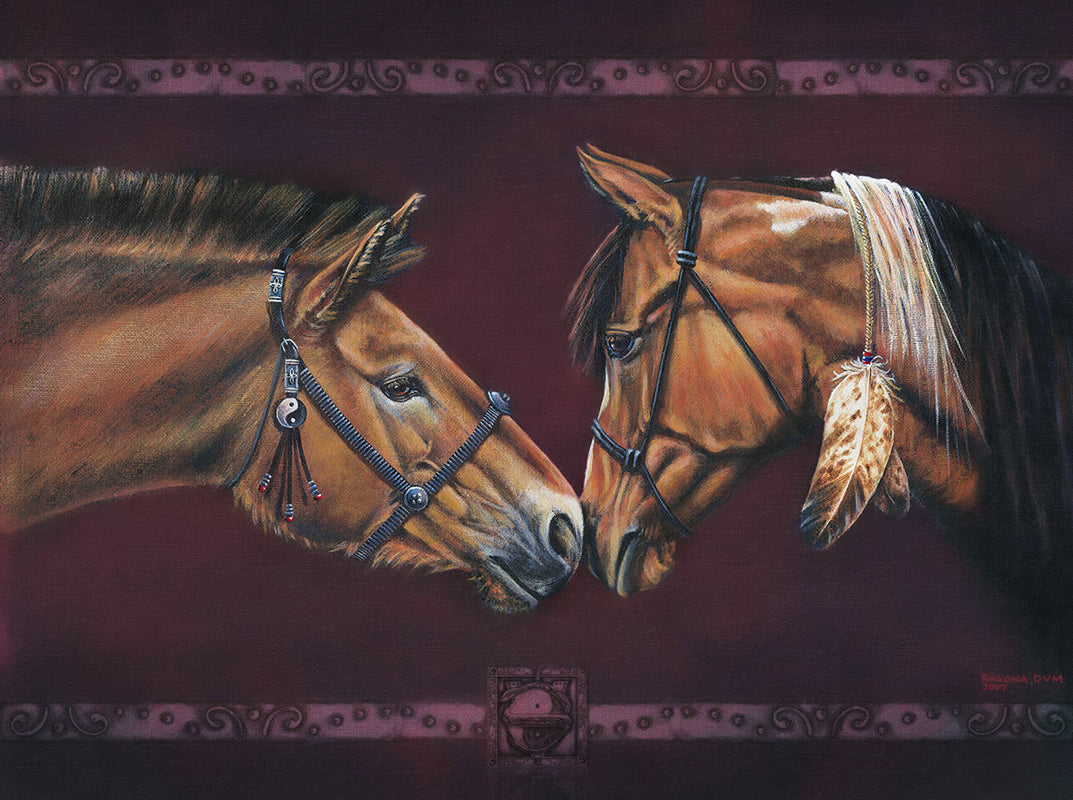 The Prezewalski horse, the sole surviving genuine wild horse in the world, roams the boarder of China. The Paint horse, forever a symbol of our historic old west, is still a very popular mount. This image represents our future both in medicine and culture where educated advances from the East and West are realized.