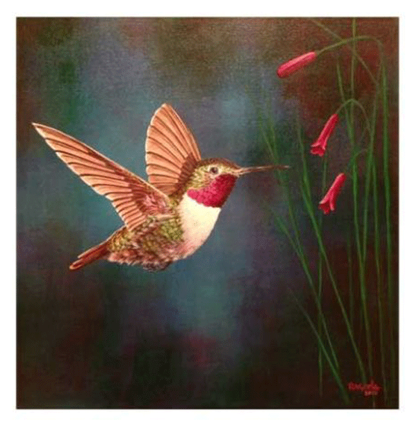 I was inspired to create this painting for my mother, Mary Ragona. I owe her my life and love and hold her in the highest regard as a beautiful person and my mentor on many levels. When I visited Costa Rica this year, I was amazed by all the Hummingbirds so I brought some beauty home for my Mother to see.
