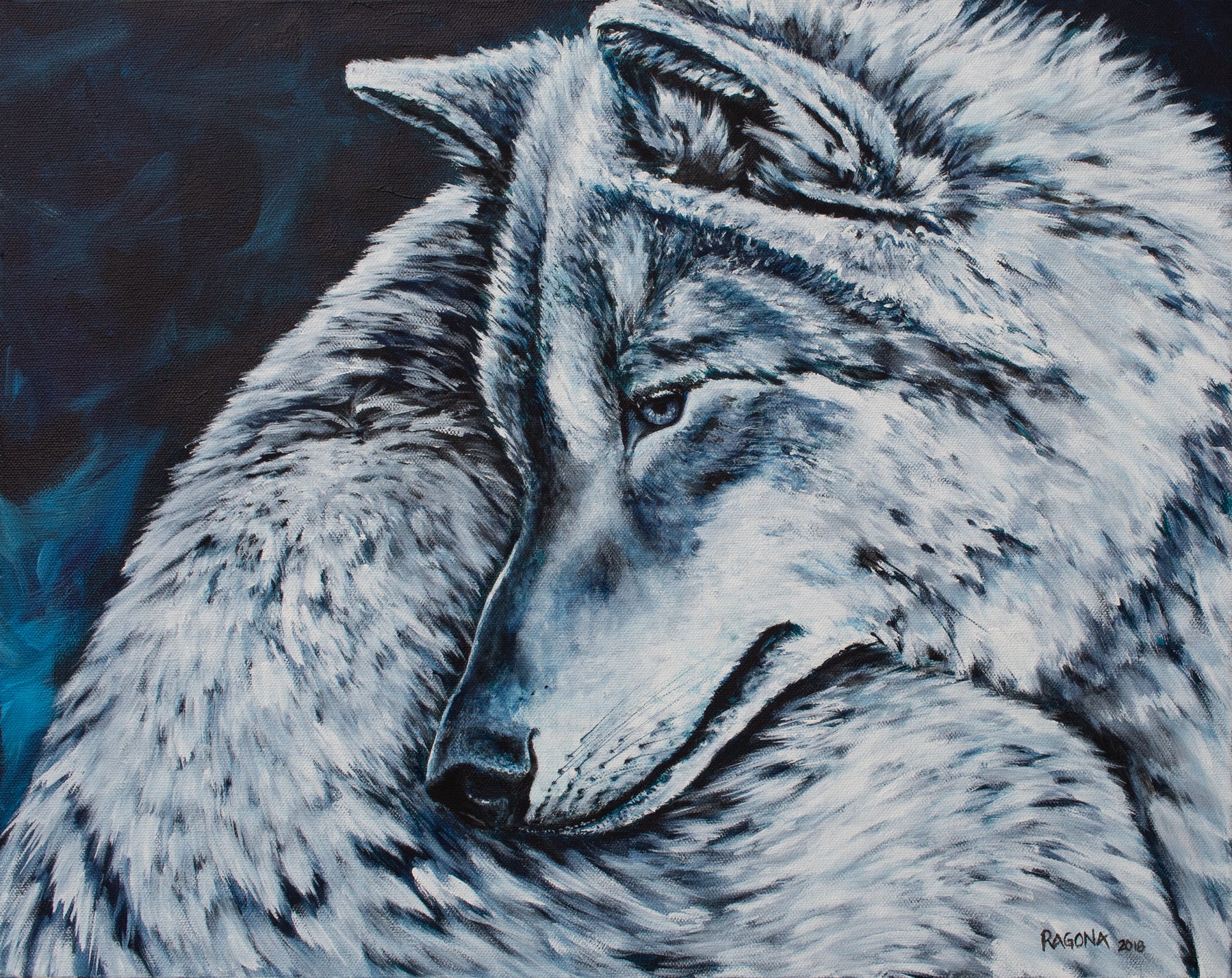Still Wolf Acrylic on Canvas Giclee 16″ x 20″